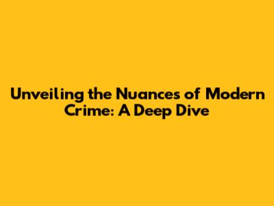 Unveiling The Nuances Of Modern Crime: A Deep Dive